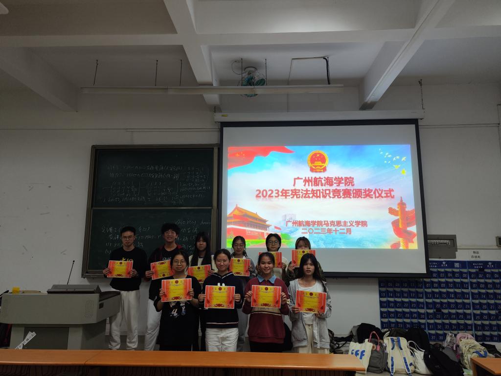 学校对竞赛成绩优异的同学进行表彰,颁发荣誉证书,由“思想道德与法治”课任课教师以教学班为单位分别举行了简短的颁奖仪式。同学们纷纷表示今后要进一步努力学习习近平法治思想和宪法知识,践行新时代法治精神,做一名尊法学法守法用法的新时代大学生。
