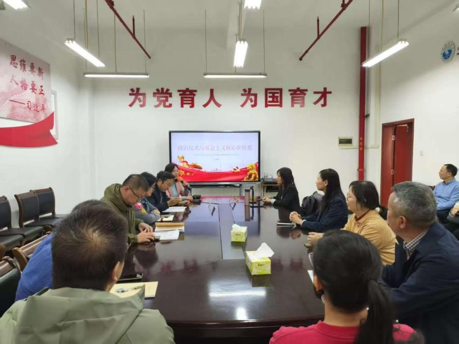 汪荣在点评中指出,王翠华的研究创新性地将政治仪式与社会主义核心价值观教育相结合,这种跨学科研究视角对于推动社会主义核心价值观落细落实具有重要的理论价值和实践意义。与会教师围绕讲座主题展开了热烈讨论,就政治仪式的时代创新、教育实效提升等议题进行了深入交流。