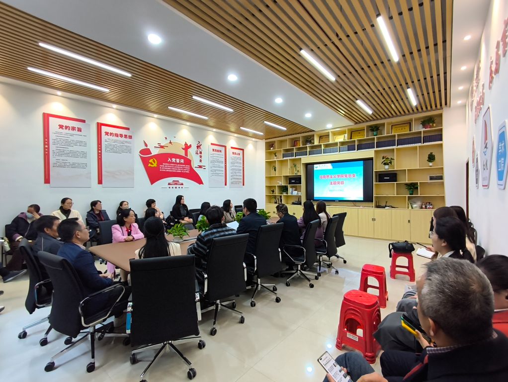 2025 年 11 月 20 日下午,马克思主义学院党总支开展主题党日活动,全体教职工齐聚 B5 文理楼 211 会议室,集中观看人文纪录片《珠江》第三集“海不扬波”,活动由党总支书记冯金磊主持。