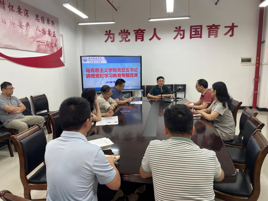 为深入学习贯彻习近平总书记关于党纪学习教育的重要讲话和重要指示精神,推动党纪学习教育走深走实,5月16日下午,马克思主义学院党总支书记贾文武在文理楼211会议室以《学习践行<党章>,争做合格党员》为题,为全院党员和教职工讲授党纪学习教育专题党课。