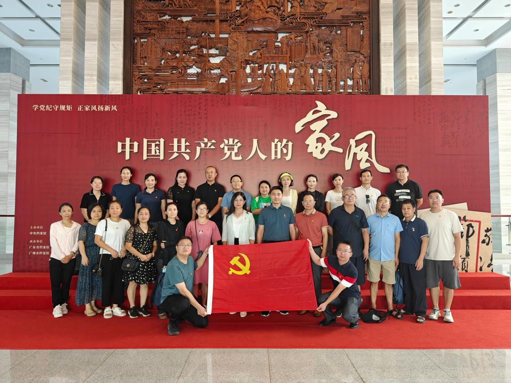 为深入学习贯彻党的二十届三中全会精神,深入学习贯彻习近平总书记关于全面加强党的纪律建设和注重家庭家教家风建设的重要论述精神,扎实推进党纪学习教育,9月19日下午,马克思主义学院(以下简称学院)党总支书记冯金磊带队赴广州市档案馆开展主题党日活动,参观学习“学党纪守规矩 正家风扬新风”——中国共产党人的家风档案文献展。学院全体党员和思政课教师参加活动。
