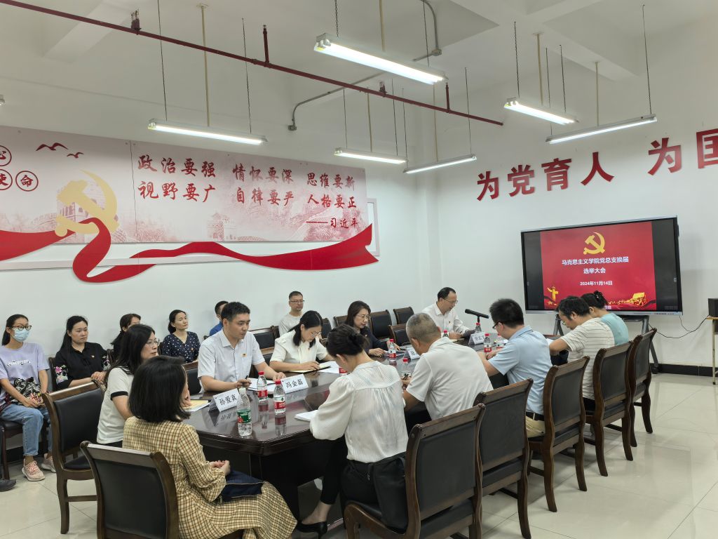 为进一步增强马克思主义学院党总支的创造力、凝聚力和战斗力,2024年11月14日下午,马克思主义学院党总支在B5楼211会议室举行了党总支委员换届选举大会。学校党委委员、纪委书记、监察专员陆志英同志、党委组织部刘楚同志出席会议,学院全体党员参加了大会。会议由马克思主义学院院长田志文主持。