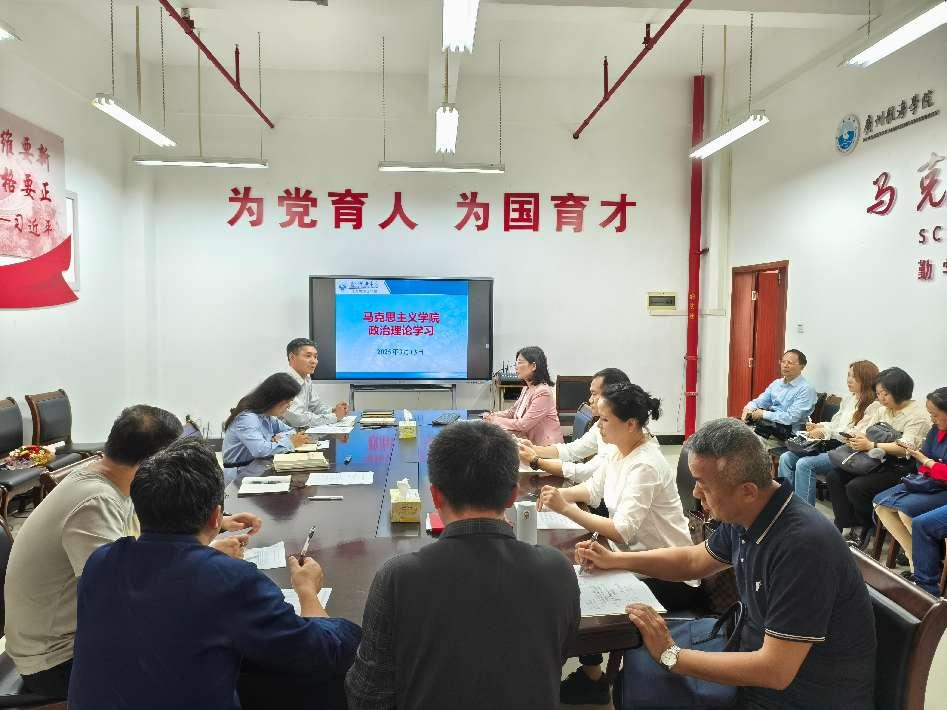 为切实把思想和行动统一到习近平总书记重要讲话精神和党的二十届三中全会精神、全国教育大会精神及《教育强国建设规划纲要(2024-2035)》(以下简称《纲要》)部署要求上来,为推进教育强国建设的实践做出贡献,3月13日,马克思主义学院在B5文理楼211会议室先后召开学院全体教职工政治理论学习会议、党总支委员会议和理论学习中心组学习会议。党总支书记冯金磊主持会议,副书记、副院长孙爱真及全院教职工参加政治理论学习会。