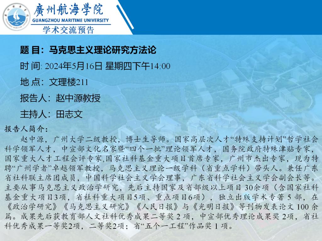 学术讲座预告:赵中源《马克思主义理论研究方法论》