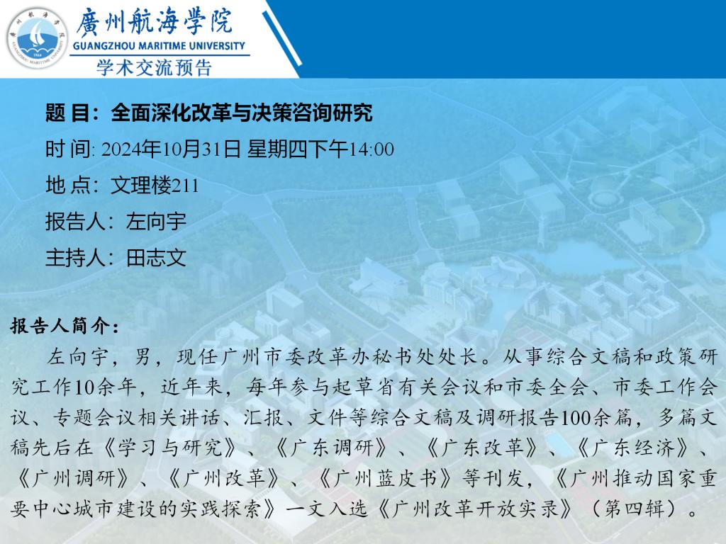 学术讲座预告:左向宇《全面深化改革与决策咨询研究》