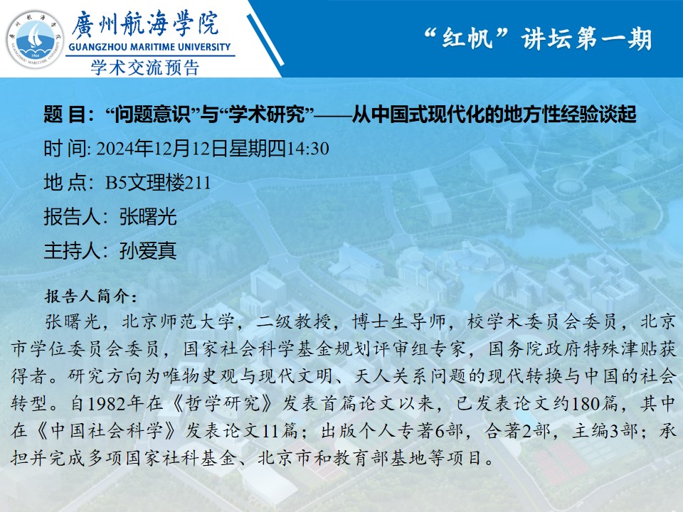 学术讲座预告:张曙光《“问题意识”与“学术研究”——从中国式现代化的地方性经验谈起》